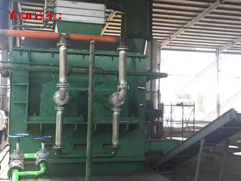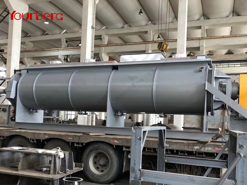 空心軸上密集排列著楔型中空漿葉,熱介質(zhì)經(jīng)空心軸流經(jīng)漿葉。單位有效容積內(nèi)傳熱面積很大,熱介質(zhì)溫度從-40℃到320℃,可以是水蒸汽,也可以是液體型:如熱水、導(dǎo)熱油等。間接傳導(dǎo)加熱,沒(méi)有攜帶空氣帶走熱量,熱量均用來(lái)加熱物料。熱量損失僅為通過(guò)器體保溫層向環(huán)境的散熱。楔型漿葉傳熱面具有自清潔功能。物料顆粒與楔型面的相對(duì)運(yùn)動(dòng)產(chǎn)生洗刷作用,能夠洗刷掉楔型面上附著物料,使運(yùn)轉(zhuǎn)中一直保持著清潔的傳熱面。漿葉干燥機(jī)的殼體為Ω型,殼體內(nèi)一般安排二到四根空心攪拌軸。殼體有密封端蓋與上蓋,防止物料粉塵外泄而充分發(fā)揮作用。
