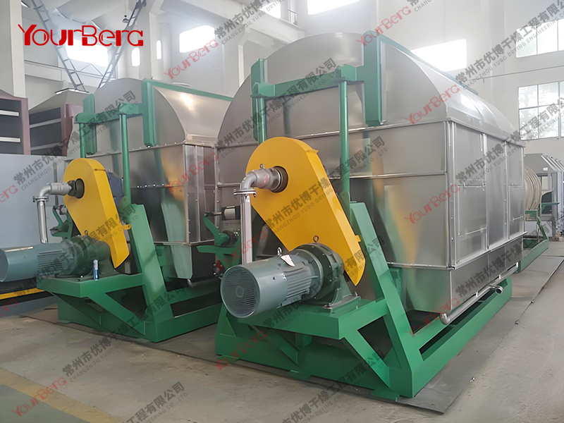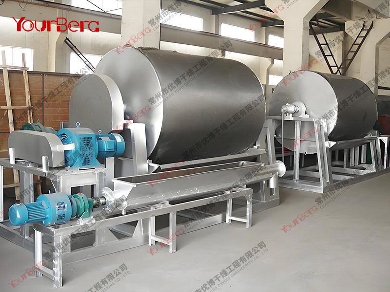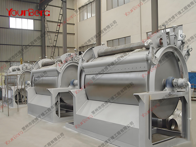3、干燥時間短。物料的干燥周期一般只有10-300秒,在適合于熱敏性物料。若將滾筒干燥機(jī)設(shè)置在真空器中,則可在減壓條件下運行。