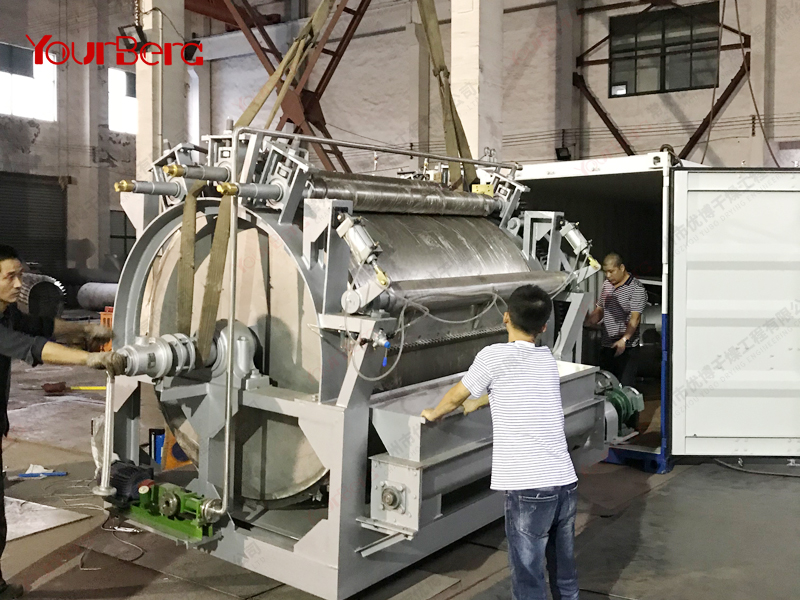 3、啟動(dòng)電機(jī),主滾筒動(dòng)運(yùn)轉(zhuǎn)平穩(wěn),溫度升高后加入物料后調(diào)整電機(jī)轉(zhuǎn)速及物料在滾筒上薄膜均勻程度來控制物料終含水量。