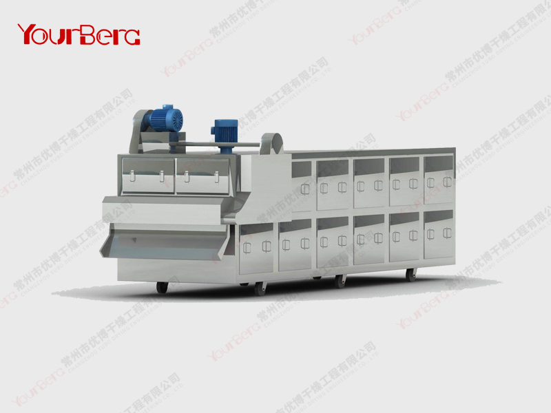 2、干燥機(jī)工作時(shí),冷空氣通過(guò)熱交換器進(jìn)行加熱,采用科學(xué)合理循環(huán)方式,使熱空氣穿流通過(guò)床面上的被干燥物料進(jìn)行均勻的熱質(zhì)交換,機(jī)體各單元內(nèi)熱氣流在循環(huán)風(fēng)機(jī)的作用下進(jìn)行熱風(fēng)循環(huán),后排出低溫高濕度的空氣,平穩(wěn)高效地完成整個(gè)干燥過(guò)程。