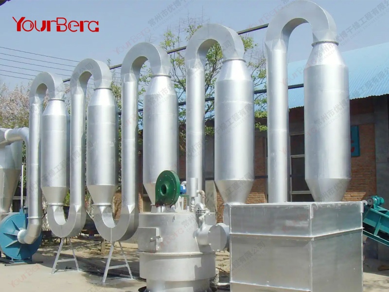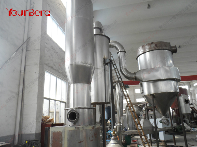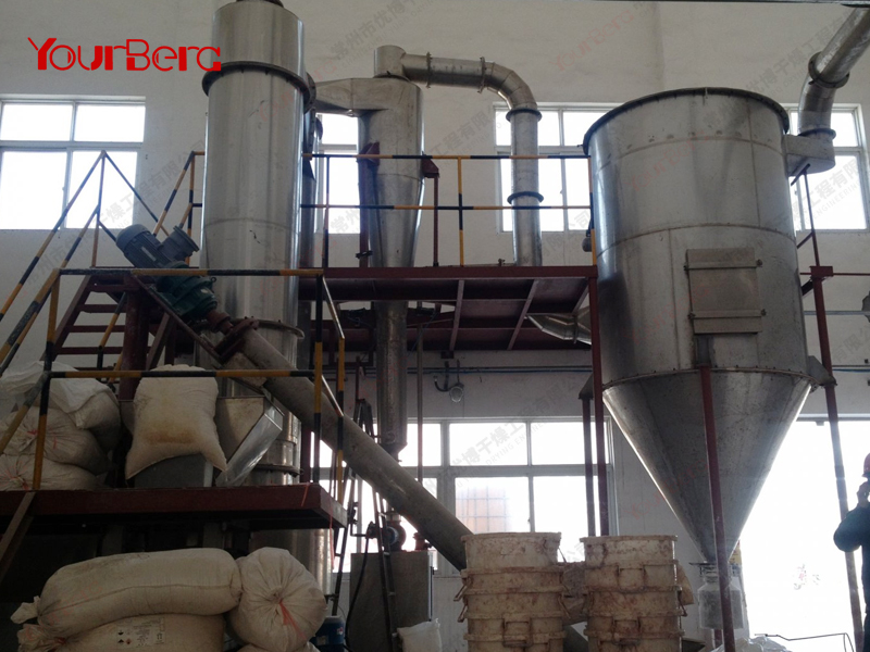 上述這類物料具有特殊性:比重輕,加料難,易燃,易爆。針對(duì)此情況,我公司技術(shù)部門(mén)開(kāi)發(fā)研制的新型氣流干燥機(jī),在原氣流干燥機(jī)的基礎(chǔ)上改進(jìn)了加料形式,解決了“架橋”現(xiàn)象。創(chuàng)新改進(jìn)了旋風(fēng)分離器,解決了物料翻滾不出料的現(xiàn)象。系統(tǒng)集成,控制先進(jìn),超溫報(bào)警連鎖關(guān)閉熱源,有效解決了溫度過(guò)高引起的燃燒爆炸問(wèn)題。
